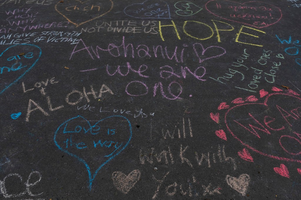 The first terror attack took place at Al Noor Mosque, which faces Christchurch’s Hagley Park. Some parts of the park were cordoned off by police. Many makeshift memorials have appeared near the Al Noor Mosque. Those who gathered at these memorials are from diverse ethnic backgrounds.Messages left at memorials near the Al Noor Mosque speak of peace, love, unity, and respect.The pavement at the Christchurch Botanical Gardens, near the Al Noor Mosque, became a canvas for a chalk artist offering condolences.Throughout the day, hundreds of people made their way to the Al Noor Mosque to mourn.A man attached a bilingual sign on a traffic light citing Surah Al-Baqarah from the Quran near the Al Noor Mosque.Close by, the forensics team continued to comb for evidence within the vicinity of the Al Noor Mosque.Members of Christchurch’s Nepali community gathered to offer their condolences. The message “Aroha nui, kia kaha” is Maori for “With deep love, stay strong.”Other parts of New Zealand also mourned the victims of the Christchurch attacks. In Dunedin, a large crowd gathered at the Al Huda mosque to offer their thoughts and prayers.Although Dunedin is some 350km away from Christchurch, the Al Huda mosque was locked down for two days while armed police guarded the perimeter. New Zealand’s police typically do not carry firearms.Some messages near the Al Huda Mosque contained the words “Kia Kaha.” The Maori phrase for “stay strong” was placed over the red and black often found in Maori flags.